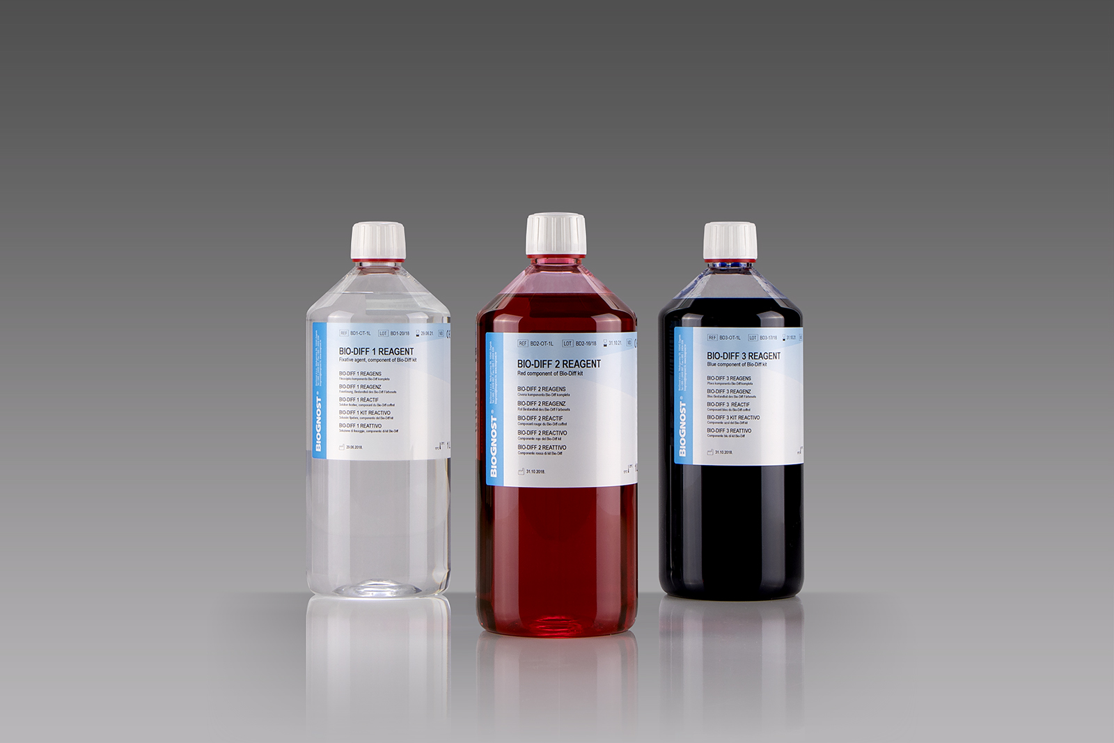 BioGnost Bio-Diff kit stains hematologic preparations in a short period of time and provides precise staining results, such as results of the May-Gruenwald Giemsa method. Each part of the kit is stabilized separately and prepared according to the highest standards.