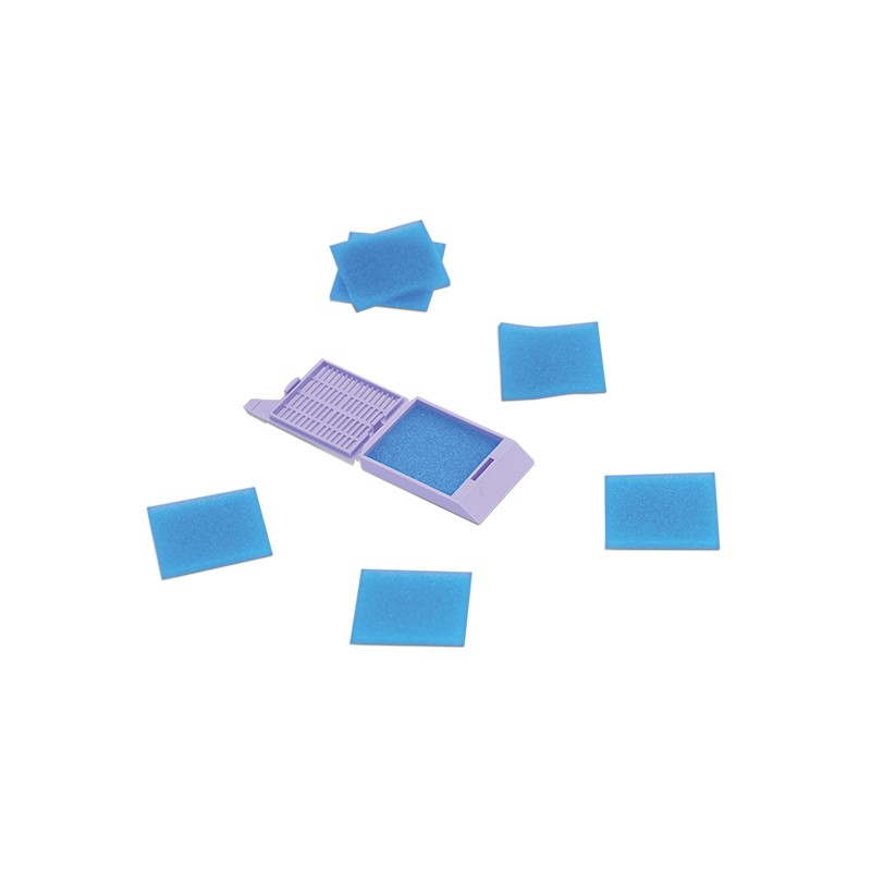 Cellular polyester foam that has uniform air pockets throughout the pad for optimal fluid flow. The small foam cells prevents either small or fragmented tissue specimens from being lost.