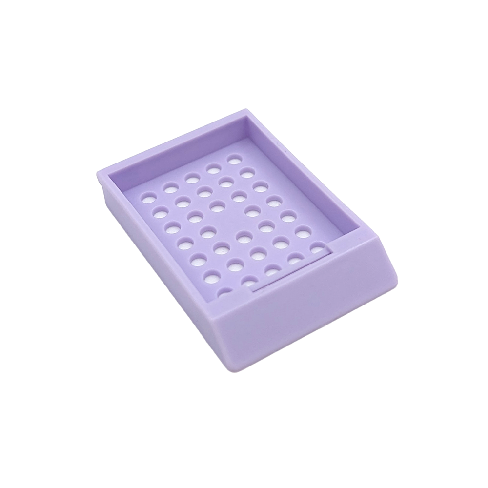 High-quality lavendar Embedding Cassettes without lids for routine embedding.