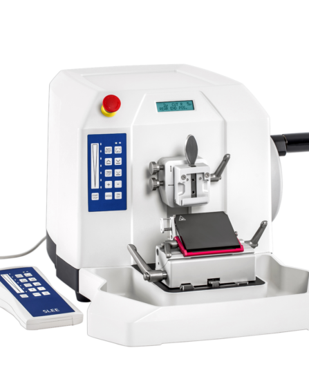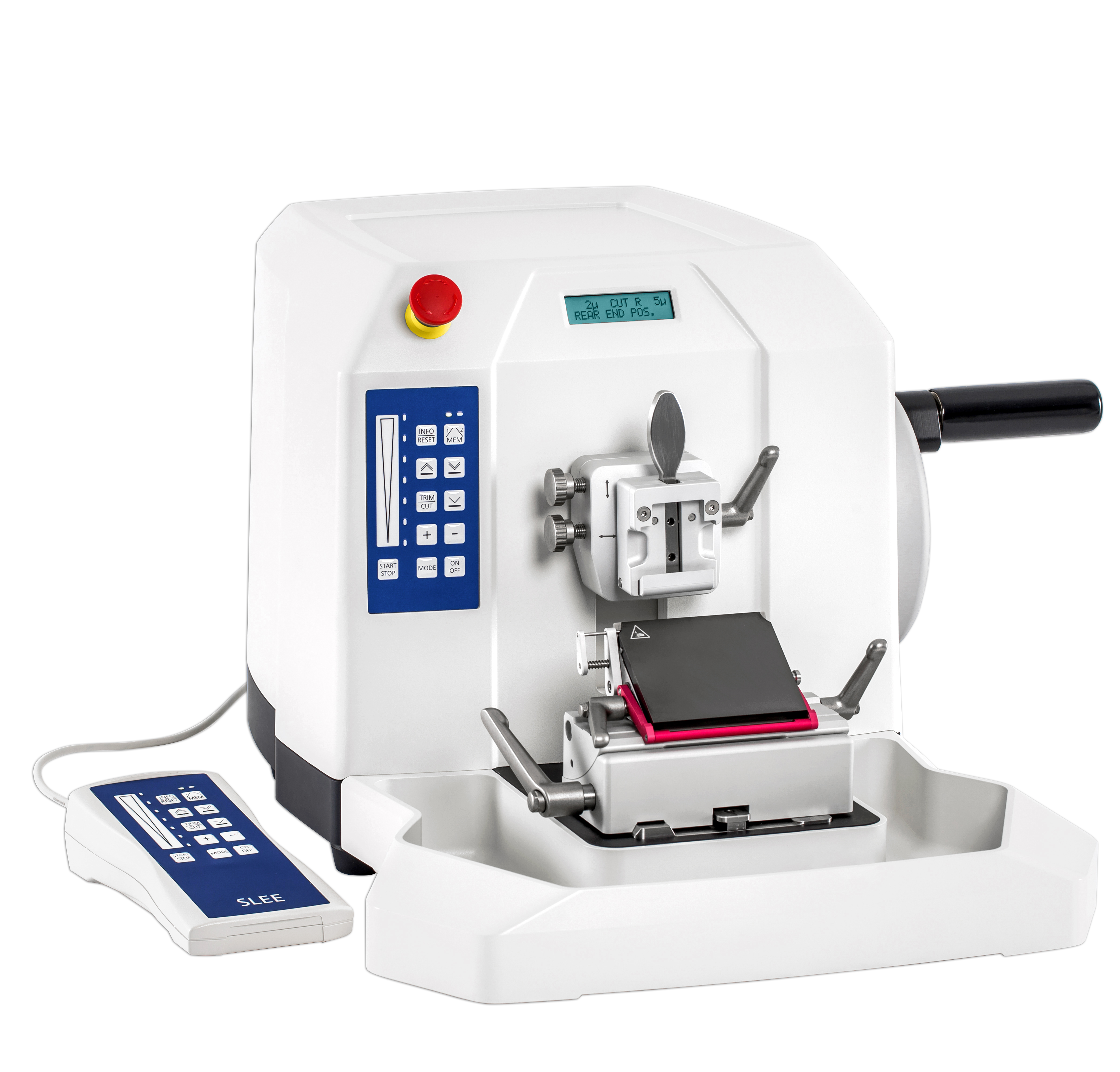 All settings can be easily seen and monitored through the LCD screen which is displayed at the eye level of the user, located on the front of the microtome.