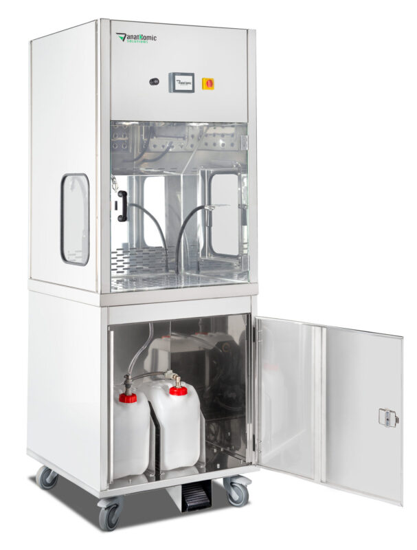 - Mobility: Robust construction with castors allows the unit to be moved to where formalin handling tasks occur.